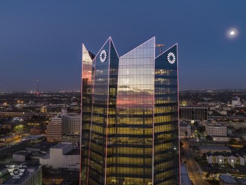 Frost Tower is a 23-story, 440,000-square-foot office building featuring 20,000 square feet of retail space on the ground floor and a six-and-a-half level parking garage.