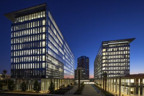Long Beach Civic Center encompasses a new City Hall and civic chambers, the Port of Long Beach Headquarters, and the Billie Jean King Main Library, stretching across six city blocks and totaling more than 620,000 square feet of space.