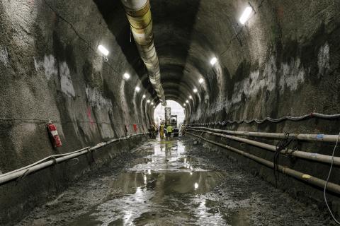 To create the turnback, the team is extending the existing north and south tunnels westward by 150 feet where they converge to a single tunnel at the 50-foot-by-50-foot bifurcation cavern. The single tunnel continues past the bifurcation for an additional 425 feet to a 30-foot finished diameter construction/egress and ventilation shaft.
