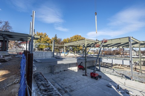 Originally built in 1906 as a streetcar storage facility, the reconstruction is transforming the historic landmark into a 10,000-ton steel-frame facility to support WMATA’s first zero-emission bus fleet. As part of this scope, 13 massive girders—each measuring 100 feet long and weighing up to 92,000 pounds—were recently hoisted by crane into place to form a structural component of the frame.